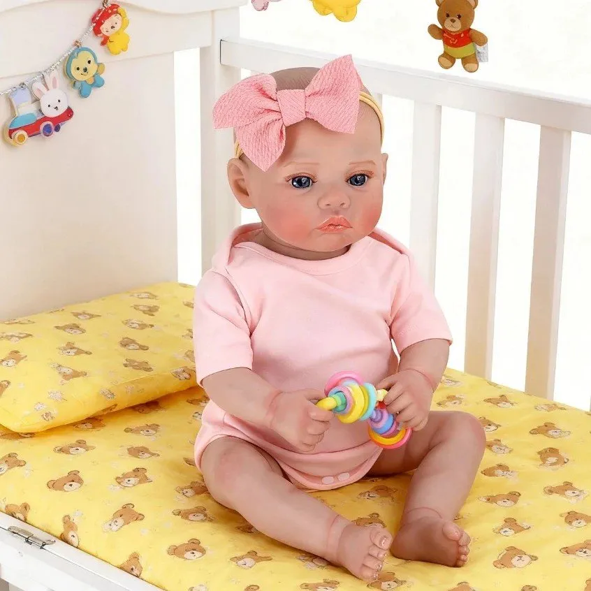 Brastoy Bebê Reborn Boneca Silicone 48cm Menina Realista Ohlo Azul